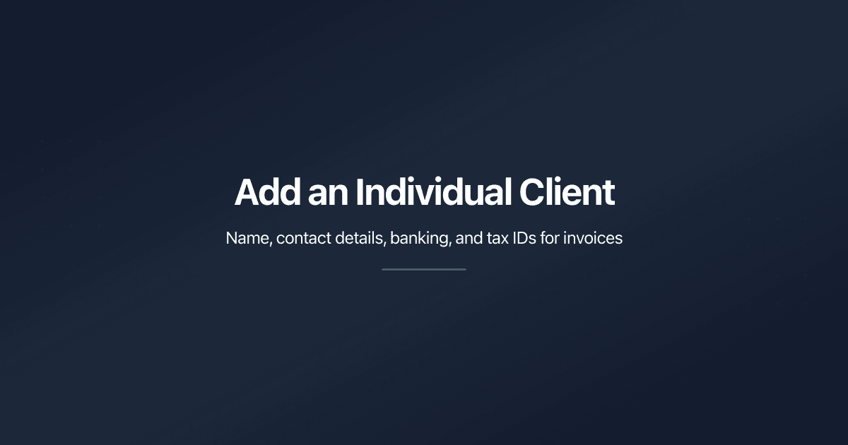 An individual client is a person you invoice directly - a freelancer, sole trader, or private customer. PaperLink stores their name, contact details, bank information, and tax IDs so it populates automatically on every invoice and estimate.
