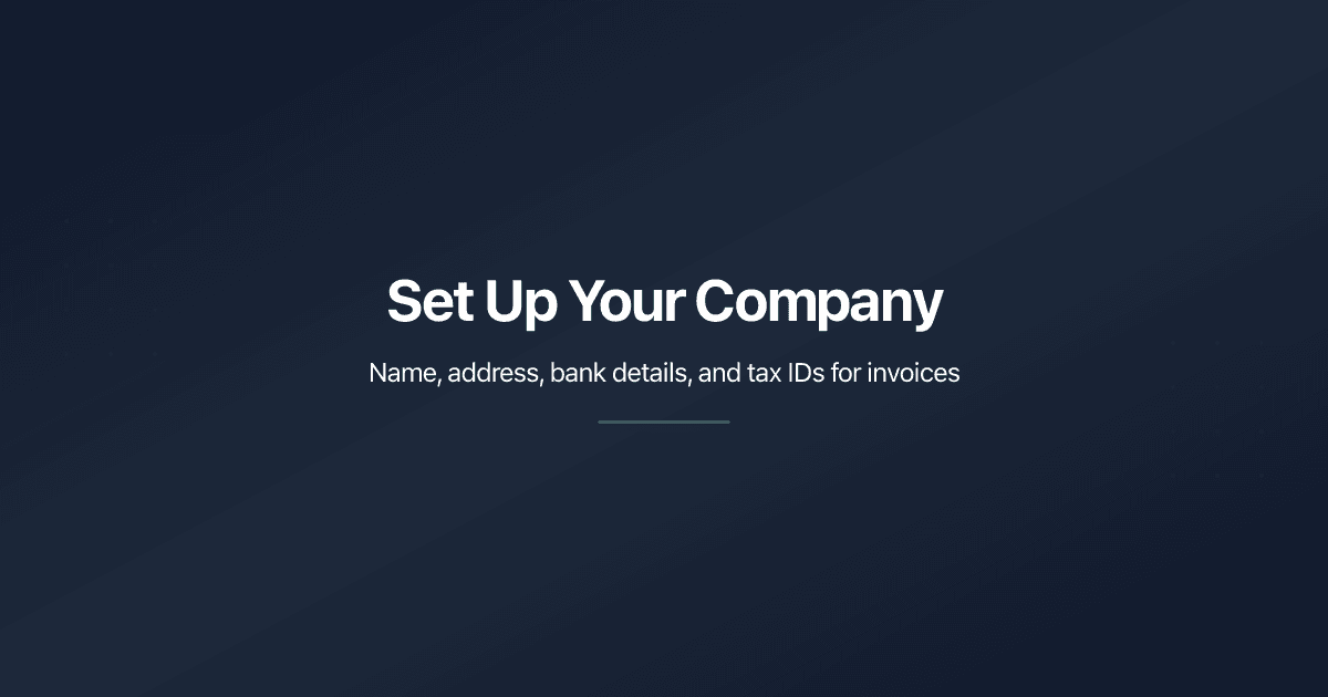 Set up your company in PaperLink - name, address, bank details, regional banking codes, and tax IDs. This info appears on your invoices.