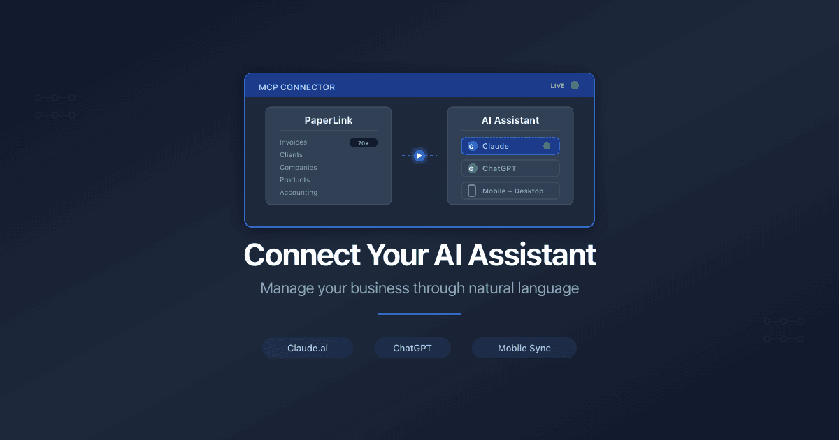 PaperLink launches 25 MCP tools for AI assistants. Manage transactions, companies, clients, products through Claude, Cursor, or ChatGPT. Now on the official Anthropic MCP Registry.