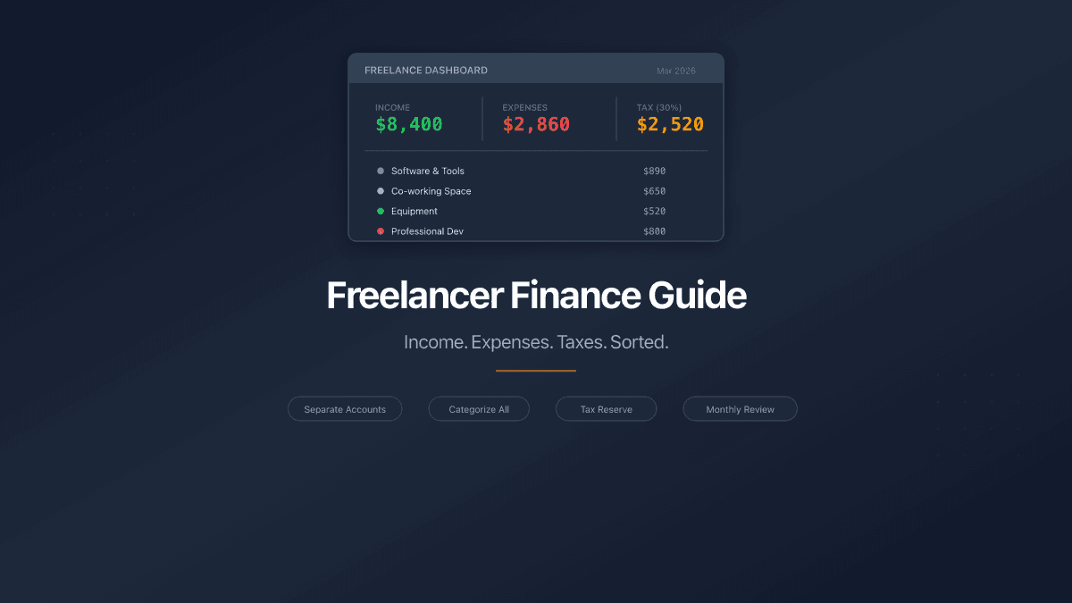A practical guide to freelancer finances: separate accounts, categorize expenses, set aside 25-30% for taxes, and review monthly. Free tools included.